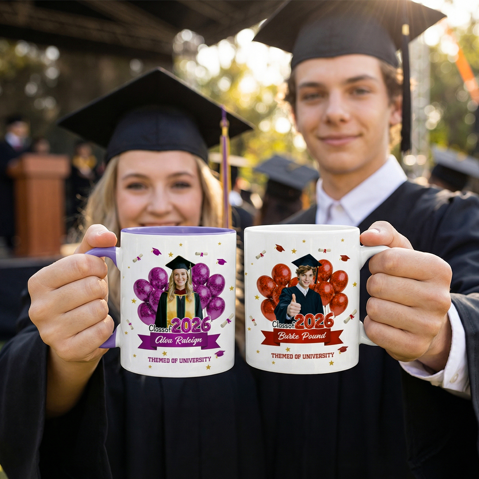 Balloon Graduation Design - The mug features a joyful graduation balloon style layout that highlights a photo in a festive and celebratory way, bringing a strong sense of achievement and memory to every sip.